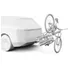 Den självstabiliserande kopplingen gör monteringen på dragkroken snabb och enkel, och de integrerade bärhandtagen gör cykelhållaren lätt att transportera.
