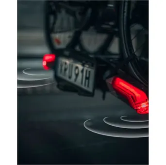 Thule Epos ParkSecure är utrustad med fyra parkeringssensorer som hjälper dig att upptäcka hinder vid backning. Systemet ger ljud- och visuella varningar via en enhet i bilen och minskar risken att skada cyklar, cykelhållare eller omgivning.